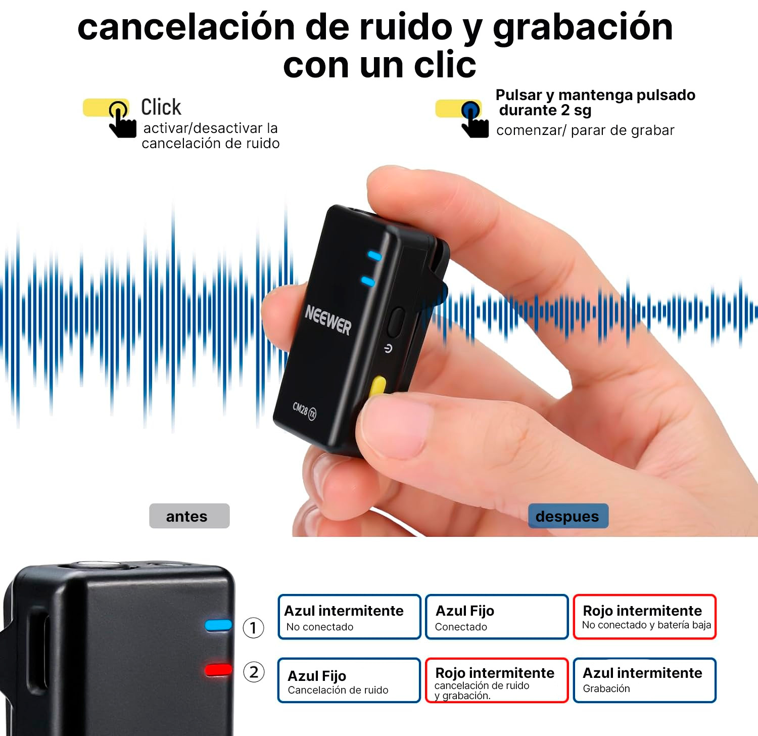 ¿Listo para llevar tus grabaciones al siguiente nivel? Te presentamos el NEEWER CM28, el mini micrófono inalámbrico de solapa que cambiará la forma en que capturas audio. ¡Prepárate para una experiencia sin cables y con calidad profesional!