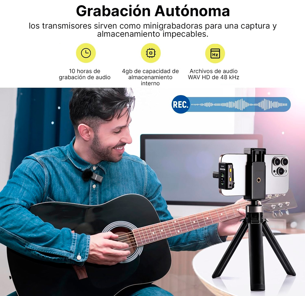 El NEEWER CM28 es un micrófono inalámbrico profesional que incluye 2 transmisores y 1 receptor, ideal para grabaciones de audio extendidas, podcasting y transmisiones en vivo. Ofrece hasta 9 horas de uso con una carga rápida en solo 1.5 horas. Cada transmisor cuenta con 4 GB de almacenamiento para grabar 9 horas de audio WAV de 48 KHz. Es compatible con iPhone, Android, y PC/MAC. ¡Perfecto para creadores de contenido en movimiento!