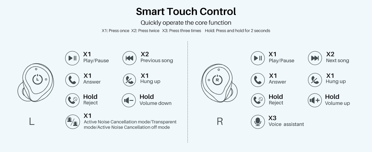 El control táctil de los TOZO NC9 es intuitivo, pero presenta algunas limitaciones. Las funciones incluyen: